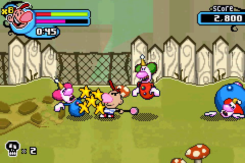 Where what fun Billy & Mandy does have in store really lies is in the mission mode, which is also necessary to unlock Mandy and Grim as playable characters. It's your typical fare to kill a wave without being hit, get to a mojo ball quickly, or locate slices of pie in a level, but it's fun in short bursts, and they can get kinda challenging. The animation and graphics are very smooth for the GBA and carry a lot of the personality of the show in them. It's true that it doesn't last long and it's a pretty dumb button masher, but it's like getting mad at Top Gear for not having sex appeal. It's a car show, and it's not Jeremy Clarkson's fault he looks like that.