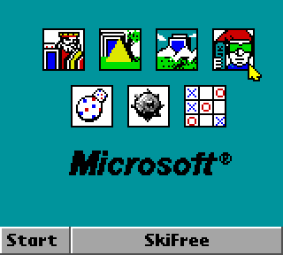 You'd think SkiFree would be a slam dunk on the GBC, but I found it difficult to control, easy to cheese by spamming the jump button, and not very satisfying at all. Minesweeper is always fun, even if the d-pad is a poor substitute for a mouse. Life Genesis is a whole Game of Life simulator, mesmerizing if an absolutely bizarre fit for the GBC, and TicTactics is, well, 3D tic-tac-toe with predictably lame results. There's enough fun to be had and care put into these versions that I can't truly knock it, though, even if I have zero idea who it was aimed at or who would like it other than vintage Microsoft spergs like me. And, again--the main menu looks like Windows 95. That's fascinating.
