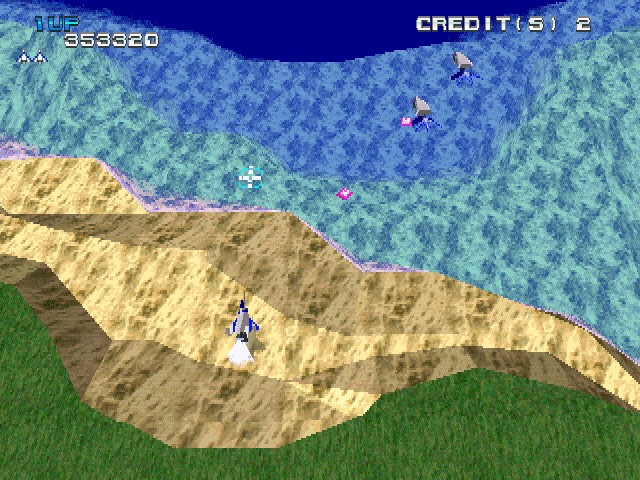 3D/G makes damn good use of the extra dimension, with crazy camera moves and huge end bosses. There's three upgradable weapons to choose from, a green laser and a red tendril cannon that locks onto enemies, but I still prefer the zapper you spawn with. It sounds short with only five levels, but they're ridiculously difficult, so I've yet to beat it. Nice bonus from Namco though: the ability to completely customize your control scheme, complete with a built-in rapid fire function!