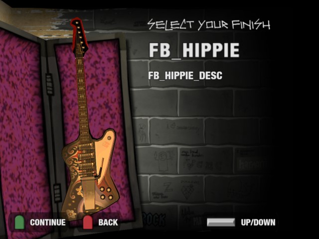 The game is hardcoded to look for [the name of the guitar]_desc when it displays the description on the "Select Finish" screen. Similarly, the game will look for [the name of the guitar]_shop_desc when you go to buy the finish in the store. Forget one, and you'll only get the shortname. This also means you can have two different descriptions for wherever the finish appears (and Harmonix themselves use this often).