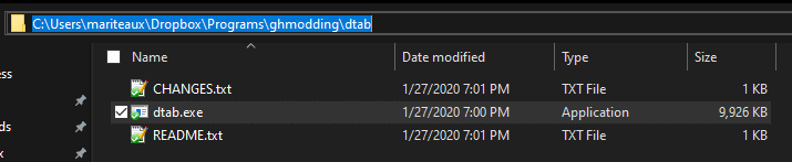 C:\Users\mariteaux>C:\Users\mariteaux\Dropbox\Programs\ghmodding\dtab\dtab.exe