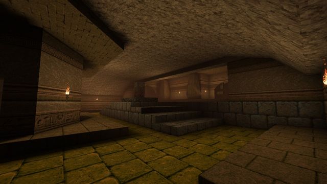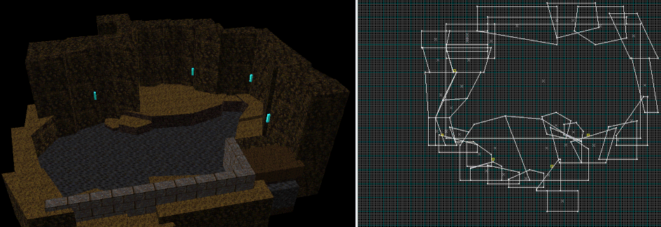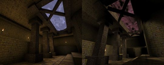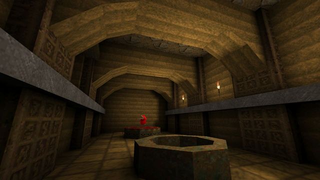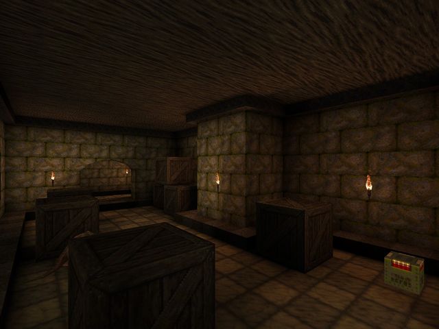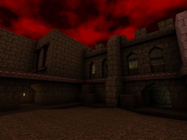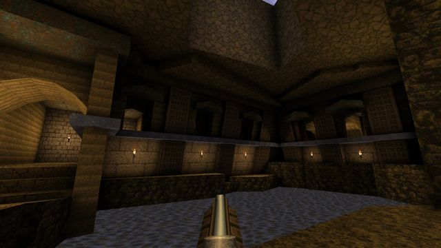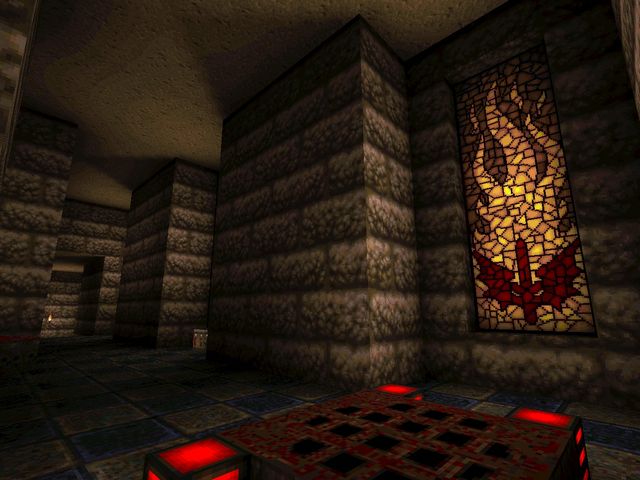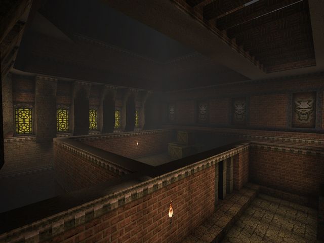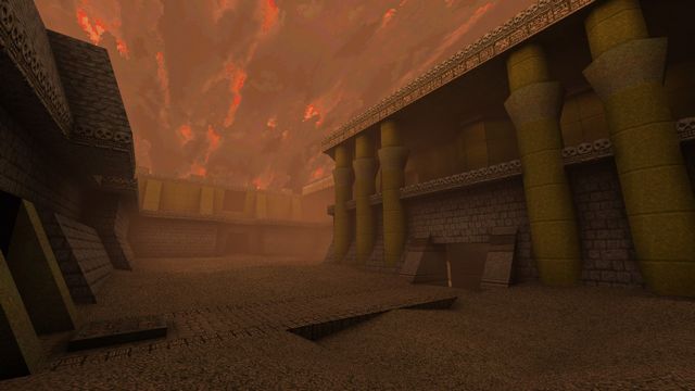 Most OpenGL source ports since have fixed overbrights, certainly anything FitzQuake-derived. I switched to Quakespasm a day or two afterwards and scrapped this for "Temple of the Strange", which was based on a similar idea of pyramids, caves, and crypts, at least at first.