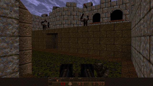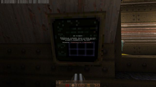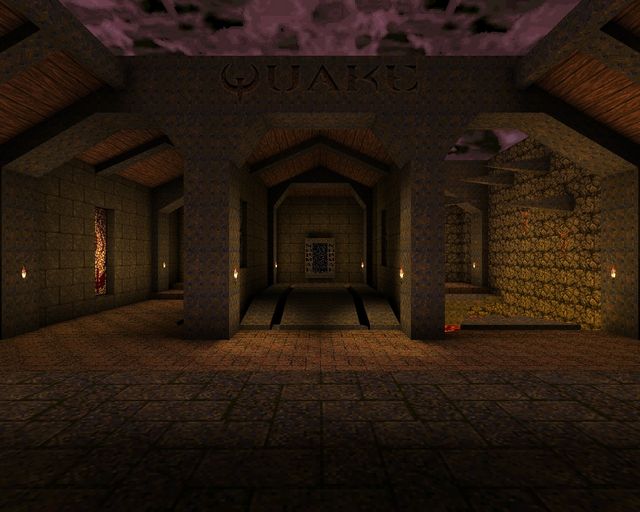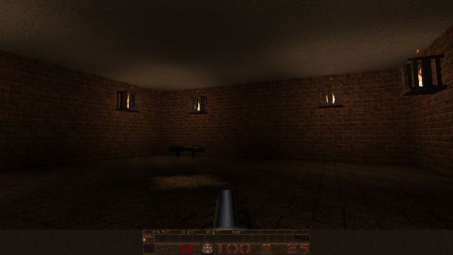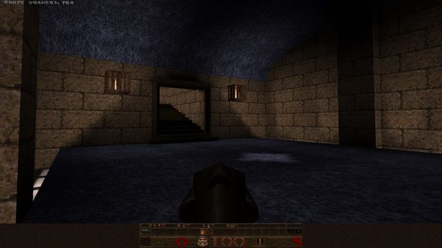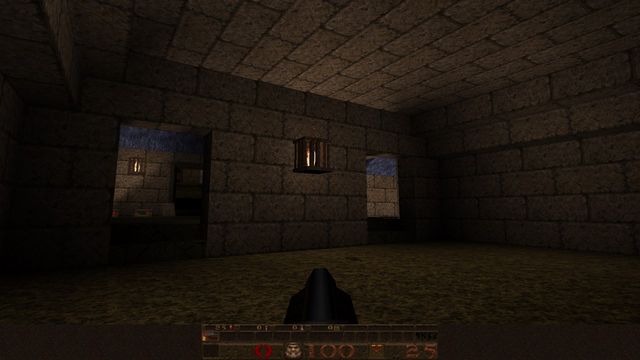 If you're wondering why the lighting looks so bland, I wasn't actually using a source port yet! I just set up J.A.C.K. with Steam's copy of GLQuake, which was a rushed, buggy port of Quake id released after John Carmack's bad experience writing vQuake for Rendition's Vérité chipset. He was so steamed, he forgot to make overbright lighting work. (In short, lightmaps in Quake can max out at 200% brightness--GLQuake will only render up to 100% brightness. Thus, most of the lighting will be middling and flat.)