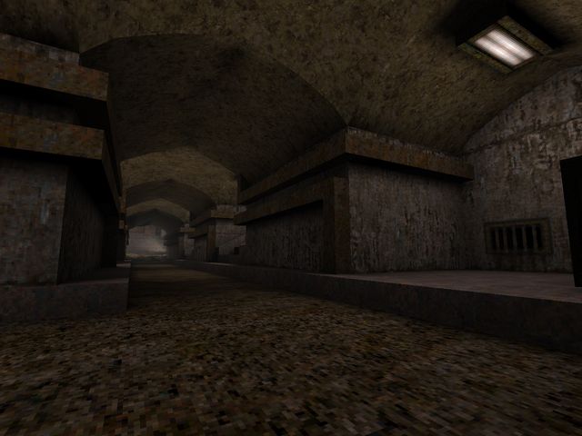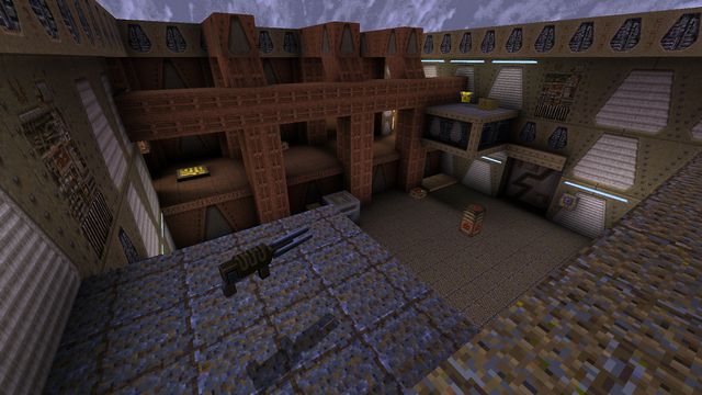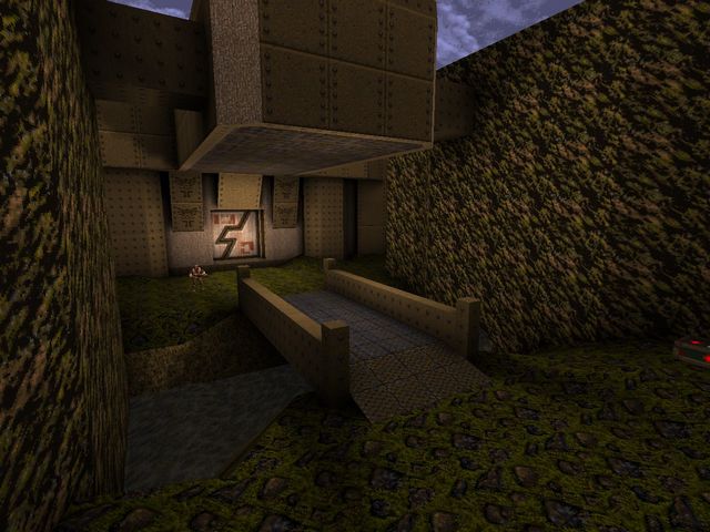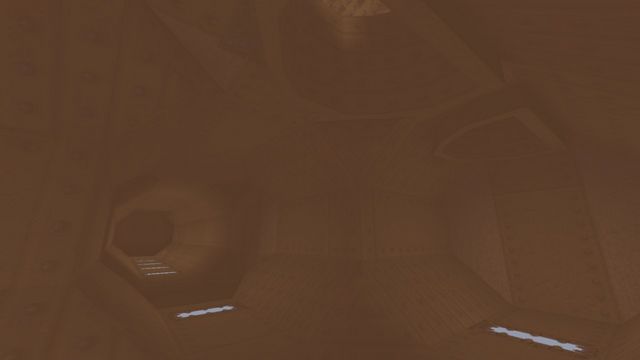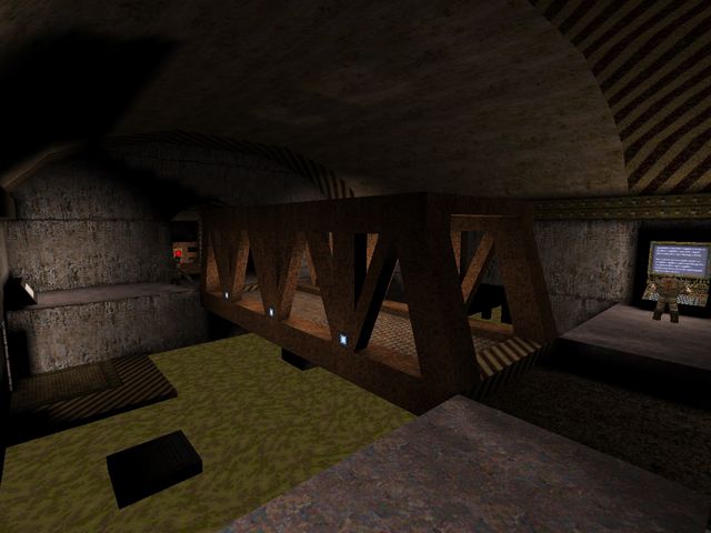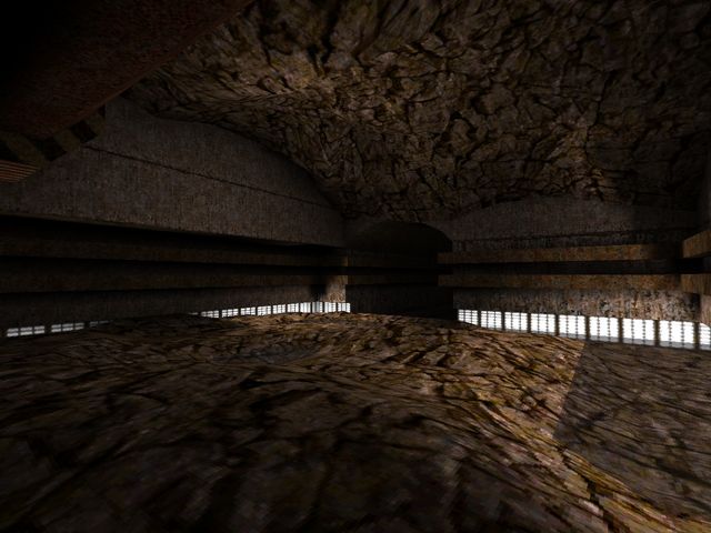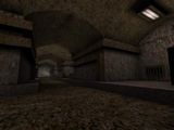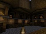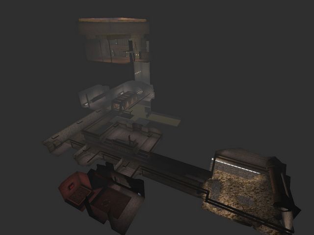 EAMS (the original "Kuras Stronghold")I went over this one in the postmortem for "Arrogant Erratum" as the map concept carried over there, but here's a few more shots of it. I do have a fondness for the warm color palette, but the brushwork was unworkable thanks to Worldcraft's preview window having the worst FOV and me misjudging all the distances. Still, lovely that more of it survives than initially thought.
