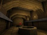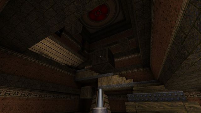 The second attempt was instead meant to emphasize the more magical aspect of it, plus some of the custom QuakeC I was toying with. This eastart was a big terracotta tower where you'd have to climb up and do a lot of jumps to get to the higher difficulties. Mostly, I mention it because it was the first time I implemented the floating boxes that'd later make up one half of "The Kuras Stronghold" floating gauntlet. They were inspired by the Harry Potter PS1 games, believe it or not; surprised no one else used them first.