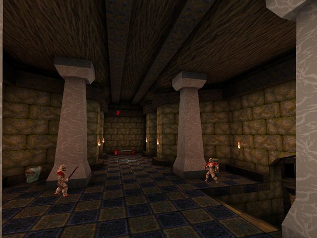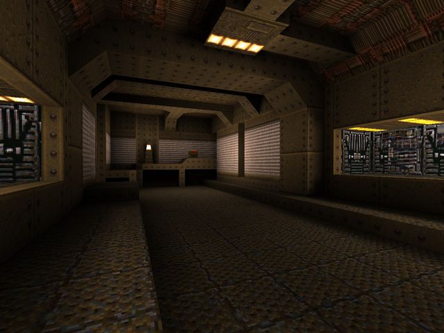 This was the first level I built from scratch. Here's where I started playing with monsters, some neat, recessed lighting and shadows, and actually trying to make these brush things look like something. Trying being the operative keyword.