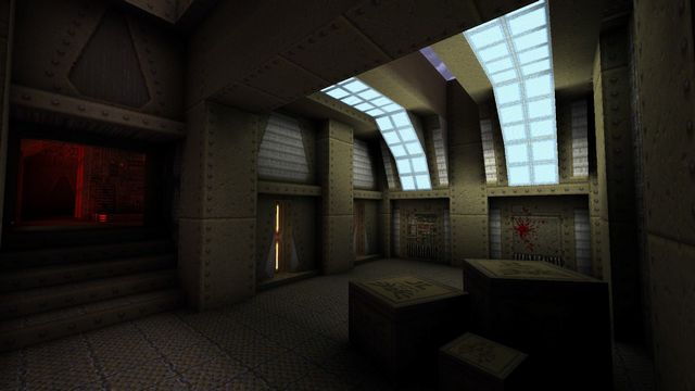 In late January 2018, I decided I really hated how DM3 looked and decided to revamp it. No fooling with the layout, just fixing texture alignment errors and relighting it with more modern tools. I actually cut this one up into a video comparison with the original DM3, complete with a really shitty song I put together to soundtrack it. Emboldened, I set out to overhaul the entire game like that, complete with nicer-looking ammo pickups. This only got as far as the start map, E1M1, and a few of the deathmatch levels.
