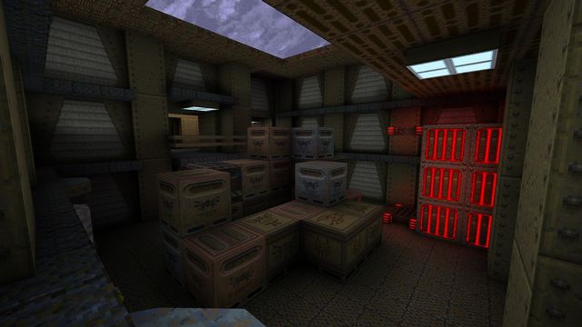 This really wasn't much of a DM level, so while I did finish it, I never released it. It was a mapping exercise, by and large. The most relevant, interesting stuff is what you see in the galleries. There was a ton of inspiration taken from DOPA's base levels, as well as Quake II's large, open, sci-fi bases (and the crates were literally cribbed from said game). Beyond that, it was kind of just a big loop with some extra hallways connecting things. Not enough heightplay for my tastes. Very pretty with the colored lighting though!