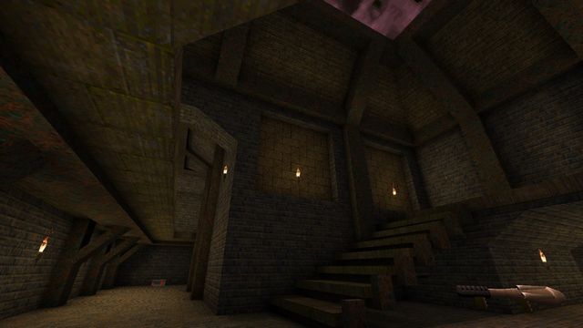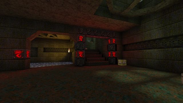 This one was a curious little detour. If you know anything about how Quake was put together, you'll know that QuakeEd was a legendarily terrible, clunky editor that Romero and friends only somehow managed to get used to. (It was also the first of its kind, in fairness.) As a result, and with polycounts that needed to stay below 400, detail and texture alignment wasn't really a focus. At the time, running the game in software at 320x200, it was barely an issue. With higher resolutions nowadays, it's a bit more noticeable.