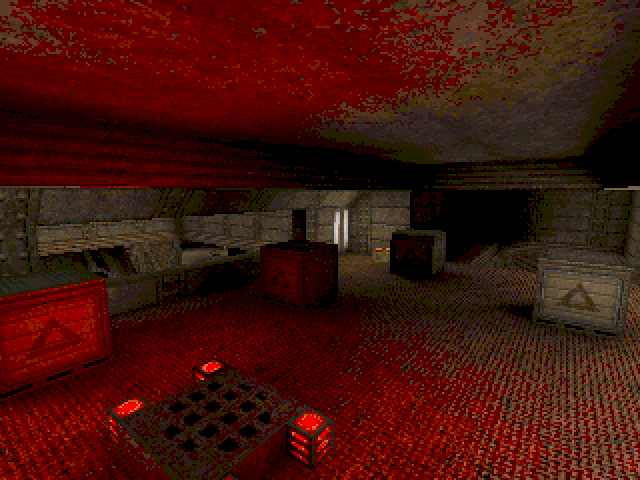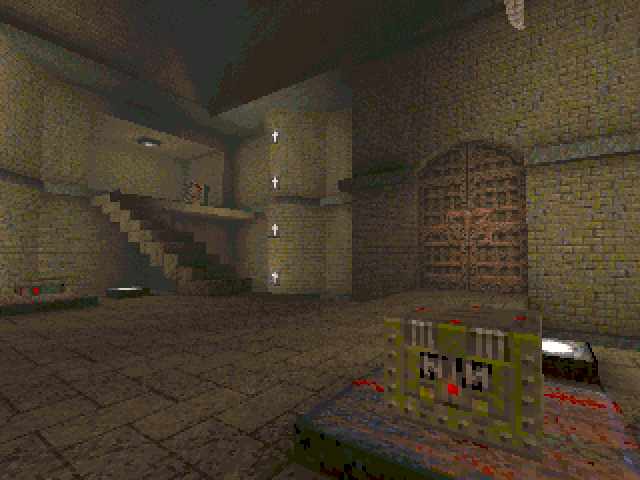 Kind of the forgotten Cammy map, and not without good reason. ericw and I got discussing how "Honey" implemented its weapon gate system, where you have to shoot a specific kind of ammo into a space to act as keys, in the TrenchBroom mapping Discord, and I figured I could do something similar in id1 using a button you can't directly reach if I could set it up right. (I could not.)