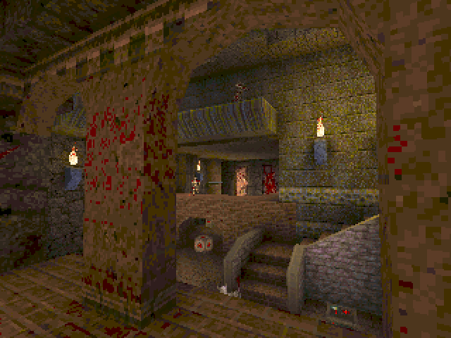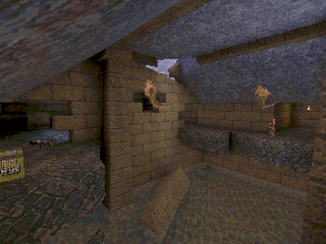I was also thinking in terms of the limits of the original engine, paying attention to wpolys and r_speeds and the like. This is where I learned about visblockers and warping the already-wonky layout all that much more to reduce what geometry was being rendered. It's funny because I remember a whole lot of people I interacted with back then thinking it was such a fool's errand, yet now we have jams for original-limit levels. I'd call myself a visionary, but it's probably just as accurate to call me a sperg. (Despite my desire for purism, I'd give this one colored lights after my discovery of ericw-tools towards the end of development. Both versions are included in the ZIP.)