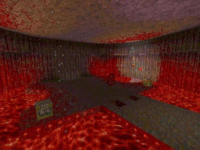 I still really like this one. It has its faults: some of the secrets are a little obscure, and the level is structured around "sawtooths" (areas that prevent backtracking), so if you miss kills or secrets, you can't go back and get them later. (The way I used the wind tunnels doesn't help; Quake's "The Wind Tunnels" stage loops back to the same main area from each tunnel output through another pipe, while mine are one-way.) I also had a guy who was weirdly irritated at the flat, detailless ceiling in the main room; needless to say, I was on a time limit, so visuals weren't my top priority.