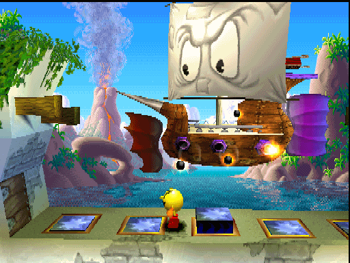 And of that quest portion! If you're used to the free camera of the PS2 Pac-Man World games, here, you're given a fixed 2D platformer-like camera--though Pac-Man still moves in 3D. This means, yes, you can fall right off the edge of stages quite easily where your depth perception fails you. I'm not even getting into the variety of flame jet hazards, wonky spinning platforms, clunky bosses, and traps that basically expect you to tank damage. I don't like save states, but I wound up relying on them as levels got more..."creative" over time. At the end of the day, Pac-Man World is a quick, cute adventure with some neat ideas that nonetheless finds your suffering very, very funny.